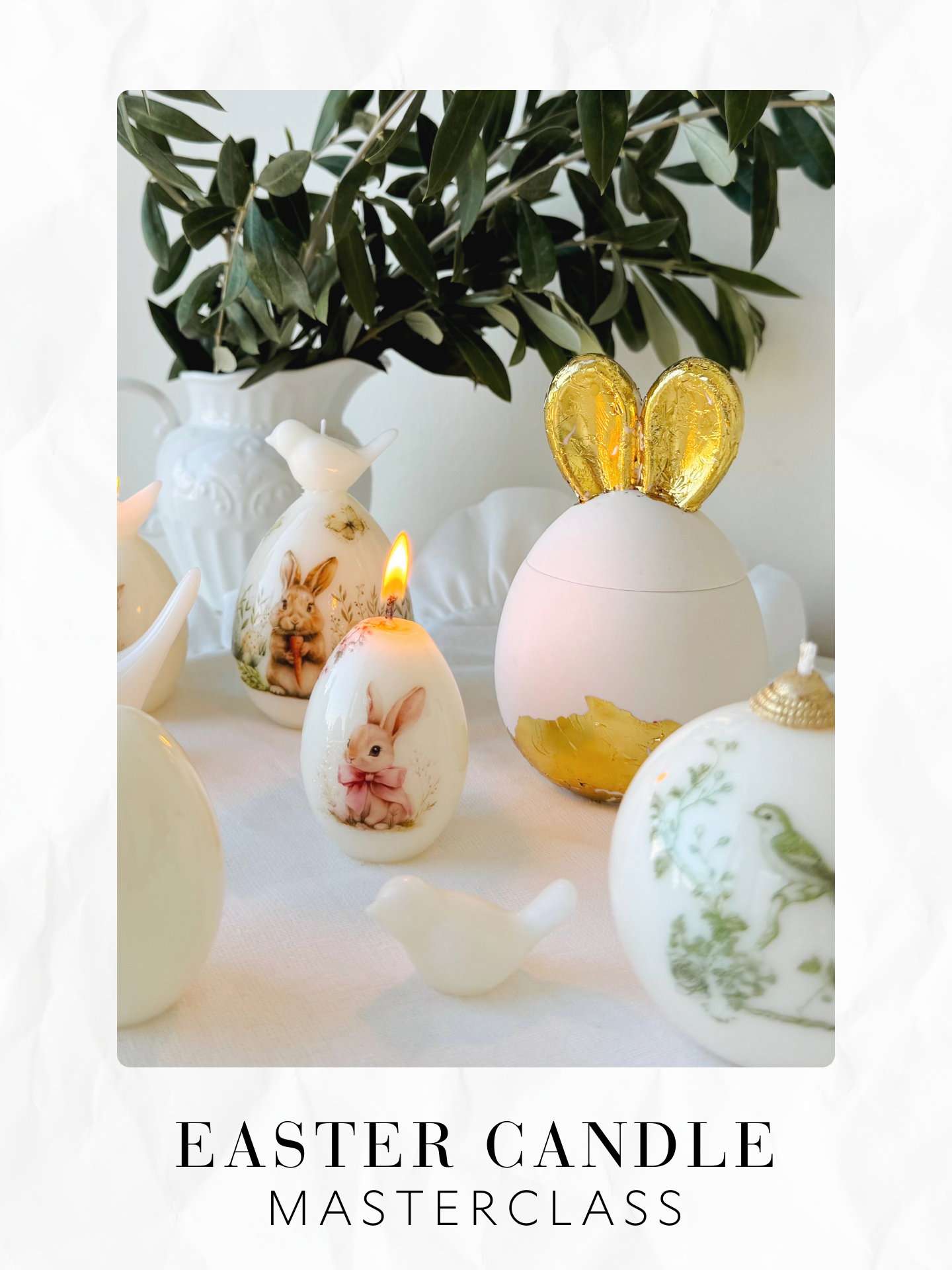 Join our expert-led online course and master the techniques to create charming Easter candles, from bunny-shaped containers to elegant egg-shaped designs.