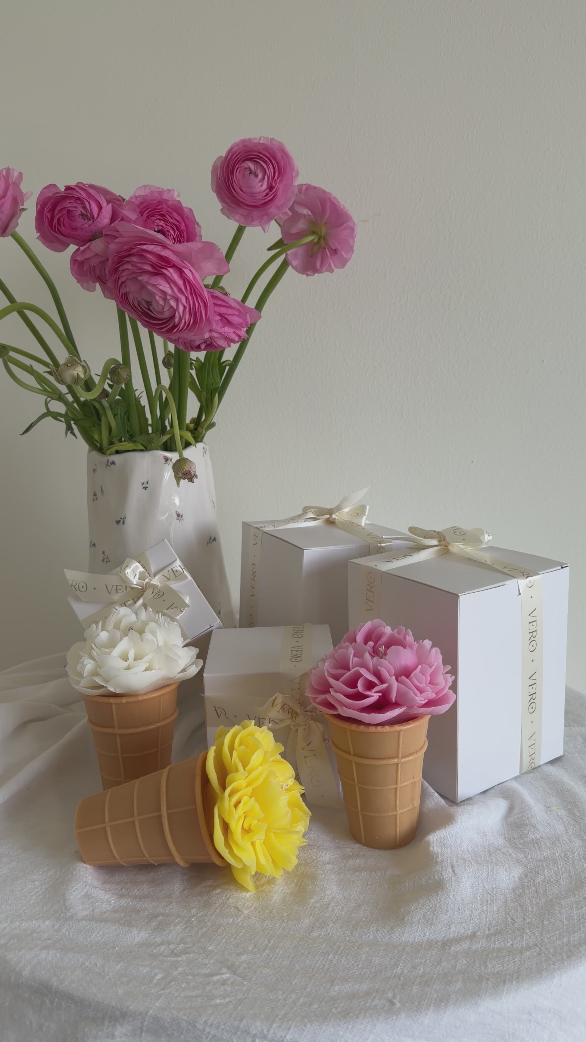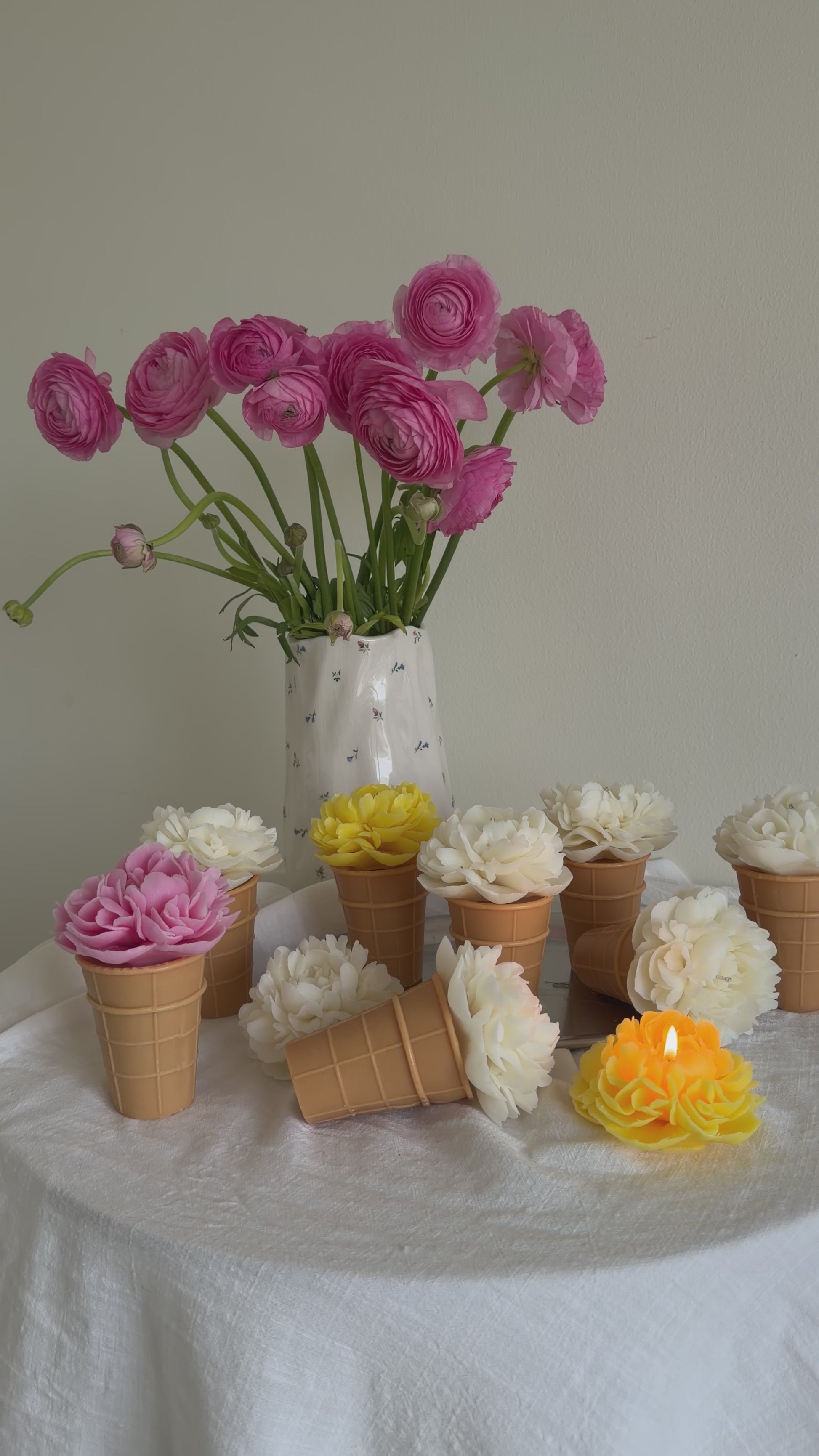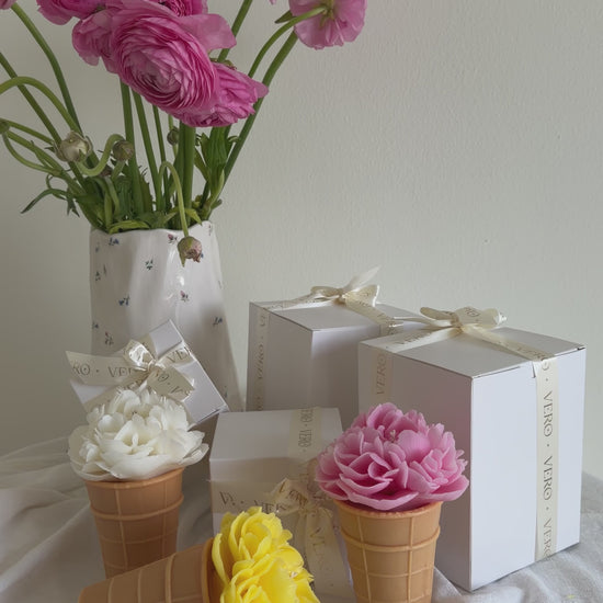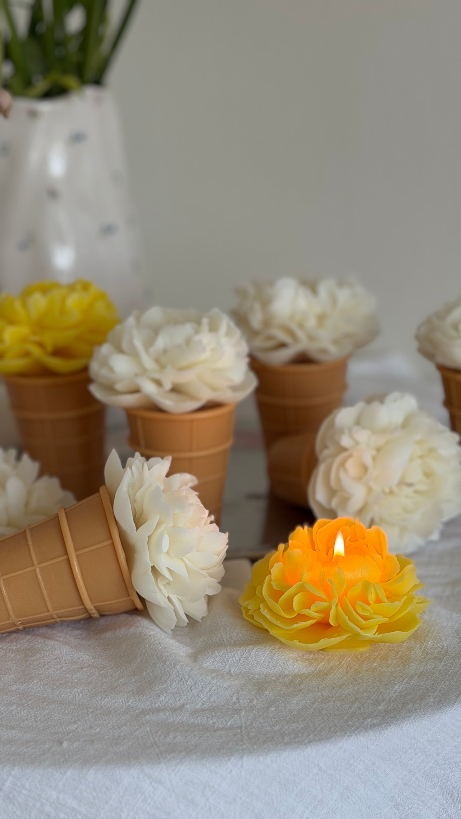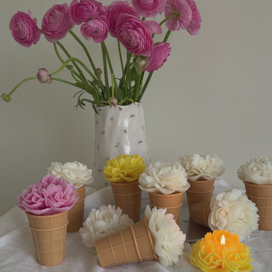 A delicate peony blooming from a cone, turning a simple candle into a small piece of art for your space. 🌸